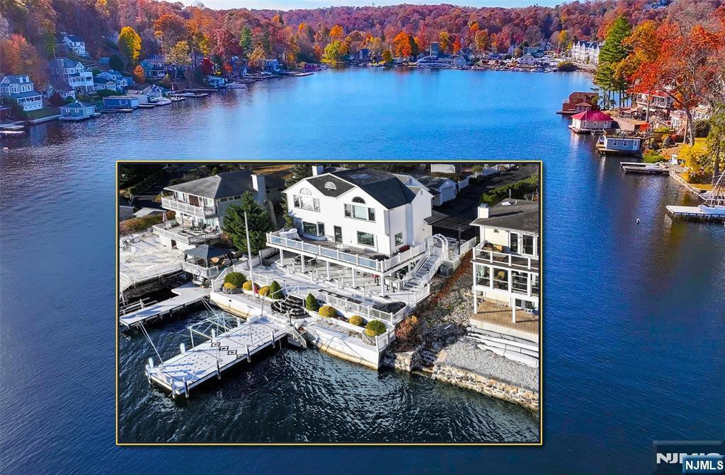 Coveted upscale NJ vacation & resort destination 50Miles from NYC, designed for large entertaining. Start dream vacation today! Landmark home, Super location, Spectacular vistas, Breathtaking sunrise/sunsets. Blocks from Hopatcong Center, proximity to all cultural & recreational venues that only NJ largest power-boat lake can afford. 4-season lake-living: fish, boat, kayak, waterski, jet ski, paddle board, snow mobile, ice skate, plus parks, hike/bike trails, & 9 restaurants. Close routes 80, 15, 10 and 287. Quick NYC commute. LR, DR, MBR, BR2, Rec-lounge have picture-window lake views. 25-speaker surround entertains decks, walks on lake & large formal alfresco dining from out-door appliances. Canopied 3-boat dock. 10-car Drvwy, detached garage & carport. Open floor plan, High ceilings, MBR with en-suite. Integrated security and appliance systems. Amenities: SS appliances, full bar, pool table, grand piano, large-screen TV, Whole-house generator, 2 grills, canopied dock