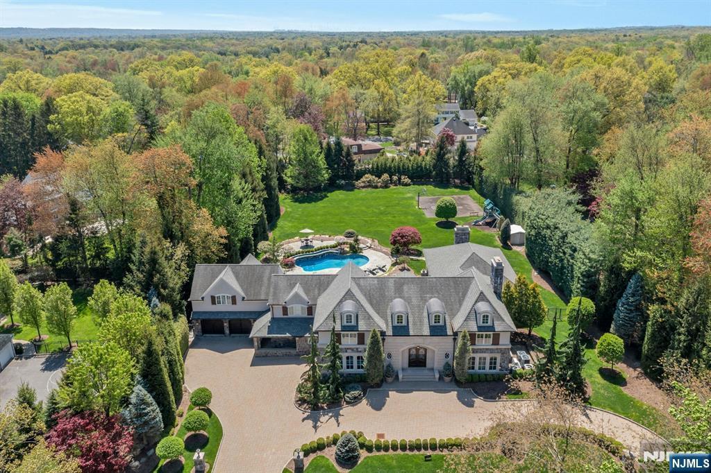 Experience luxury living in this exquisite estate featuring 5 ensuite bedrooms and 7 full baths across nearly 11,000 sqft of impeccably crafted space. With a stately stone and precast masonry facade, the home makes a striking first impression. A grand two-story foyer sets the tone with its elegant entry, leading to an intimate formal living room and a spacious formal dining room, perfect for refined entertaining. The large sun-drenched, south-facing gourmet kitchen showcases top-of-the-line appliances and opens to a grand great room with 20ft coffered ceilings and French doors leading to a sweeping loggia w/wood-burning fireplace. Nestled on 1.3 acres of resort-style grounds, the property boasts a gunite pool w/waterfall and direct access to a changing room and bath. Upstairs, the expansive primary suite offers a private balcony overlooking the pool, an oversized dressing room, and a spa-inspired bath. Adjacent is a vaulted-ceiling gym and a second luxurious bath w/soaking tub and shower. Three junior suites complete the upper level. A first-floor junior suite w/kitchenette offers ideal guest or multigenerational living or doubles as an in house cabana. The lower level features a playroom and pool room, perfect for fun and games. Blending timeless elegance with modern luxury, 21 Birchwood Rd is a rare opportunity to own an architectural masterpiece that offers exceptional comfort, refined design, and resort-style living in one of the area's most desirable settings.