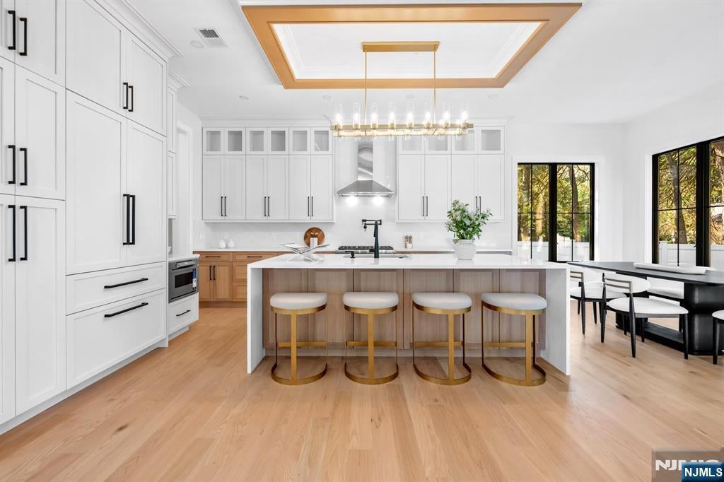 Move in Ready New construction in the Heart of Glen Rock offering approx. 5,300 Sq ft of luxurious living across 3 beautifully finished levels. This 6-bedroom, 5.5-bath home impresses with soaring 10’ ceilings, grand two-story foyer, and a bright open-concept layout ideal for entertaining. The main level features a formal dining room, expansive great room with quartz gas fireplace, and a chef’s kitchen complete with premium appliances, breakfast nook, and a fully outfitted butler’s pantry. A guest suite with full bath, designer powder room, and built-in mudroom complete the first floor. Upstairs offers 9’ ceilings, 4 spacious bedrooms including a stunning primary suite with tray ceiling and rail lighting, custom his/her closets, and a spa-inspired bath with heated floors, freestanding soaking tub, and dual-head shower. The fully finished lower level includes a glass-enclosed gym, wet bar with wine fridge, large rec room, guest suite, and bonus room. Designer trim work throughout includes boxed ceilings and custom wall moldings. The exterior boasts Hardie siding, Azek trim, Andersen 400 windows, paver driveway and patio, fenced yard, and sleek architectural roofing. Smart home features include Ring cameras, centralized vacuum, 2-zone HVAC, and more. Located close to NYC transit and top-rated Blue Ribbon Schools—this home has it all!