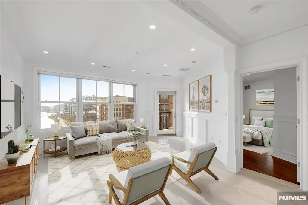World-class living awaits you in this stunning 2 Bedroom + Den / 2 Bathroom luxury home located in highly sought after Grandview I. Situated along the banks of the Hudson River and just steps from restaurants & shopping, this home features only the finest finishes. Stretching across 1,328 SqFt, this sun drenched home features direct South and East views of NYC and the Hudson River, gleaming floors, custom window treatments, custom molding and woodwork, one car garage parking, in-unit laundry, and balcony with stunning views. This corner unit floor plan includes entry foyer, living room / dining room combo, Chef's kitchen, two spacious bedrooms, renovated bathrooms, and bonus den / office. Chef's kitchen includes granite countertops, custom cabinets, SS appliances, and breakfast bar. Master bedroom features custom walk-in closet and renovated ensuite bathroom with dual vanity and linen closet. Grandview I includes 24 hour concierge, fitness center, resident lounge, outdoor pool with NYC views, and a pilot tax abatement program. Located next to ample shopping, restaurants, public transportation, and the waterfront walkway, this home is sure to please!